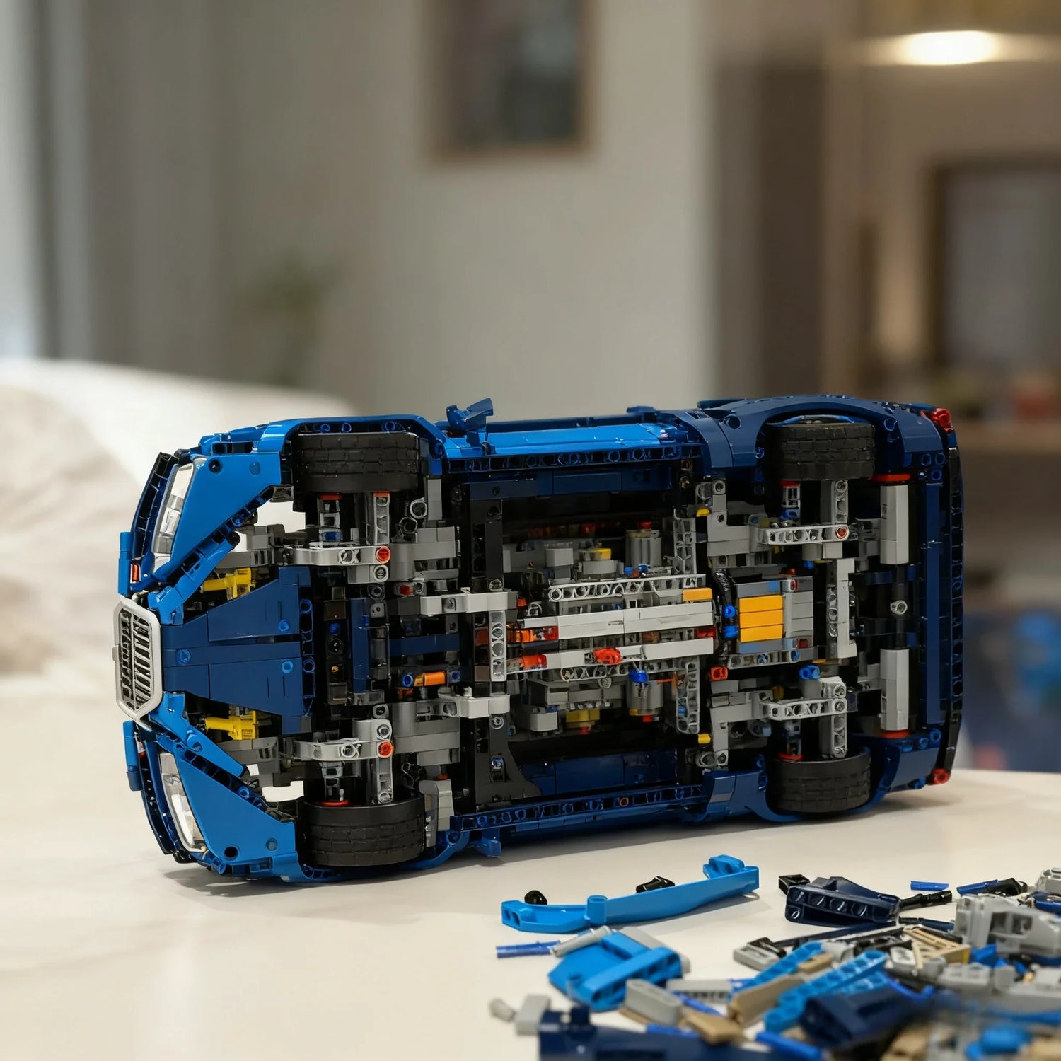 Even the underside is engineered with stunning LEGO Technic precision, showcasing the true-to-life design of the Bugatti Chiron.